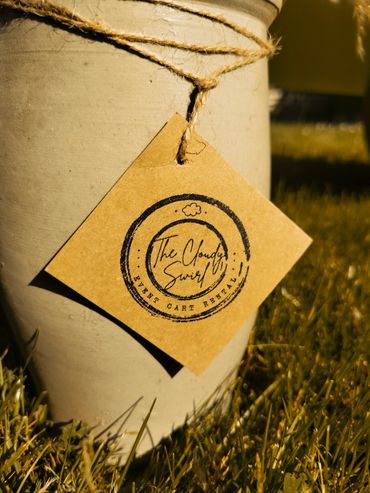 Big, wooden logo of The Cloudy Swirl